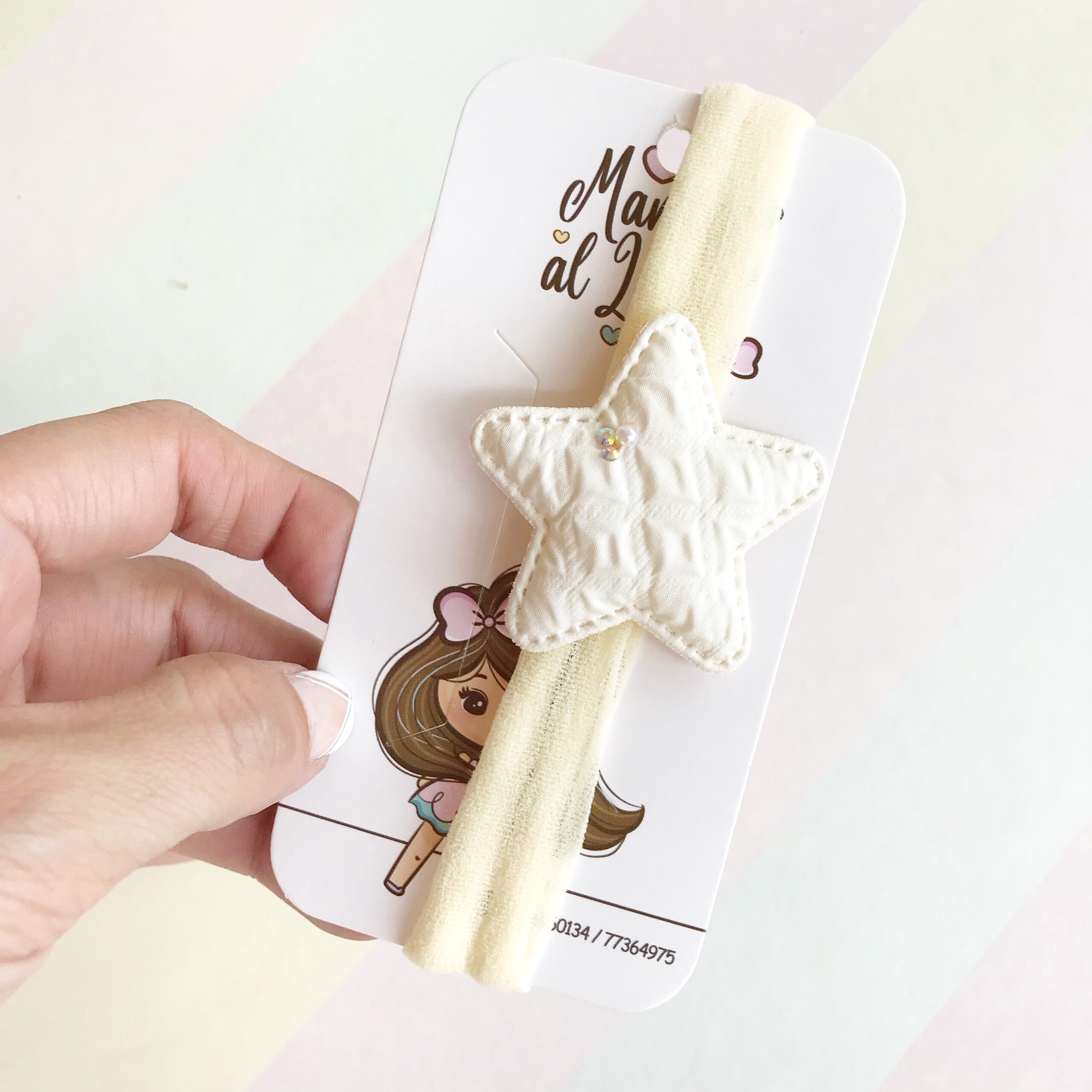 esta vinchita puede ser utilizada desde el nacimiento de su bebe hasta aproximadamente los 2 añitos de edad, es elaborada en media de seda la cual se ajusta y adapta al crecimiento de la cabecita de la bebé .